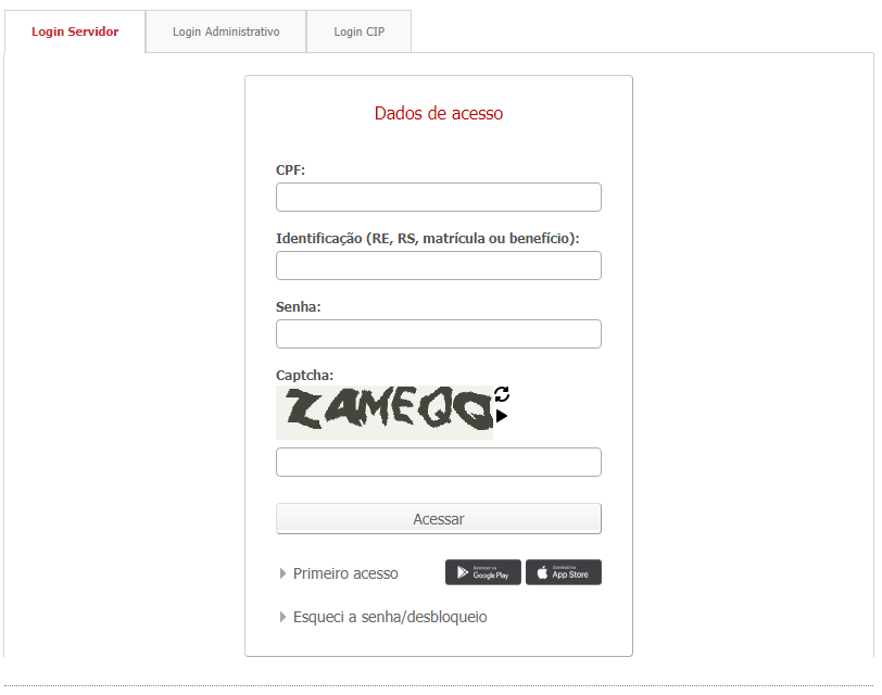 Após realizar o primeiro acesso, o servidor pode efetuar o login no Portal do Consignado utilizando seu CPF, juntamente com a senha e o Captcha fornecidos. Essas informações permitem o acesso seguro às funcionalidades disponíveis.
